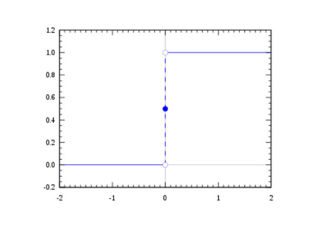 step函数很简单:接受两个参数a、x,当x>=a时返回1,否则返回0。下面是step(0,x)的函数图像。